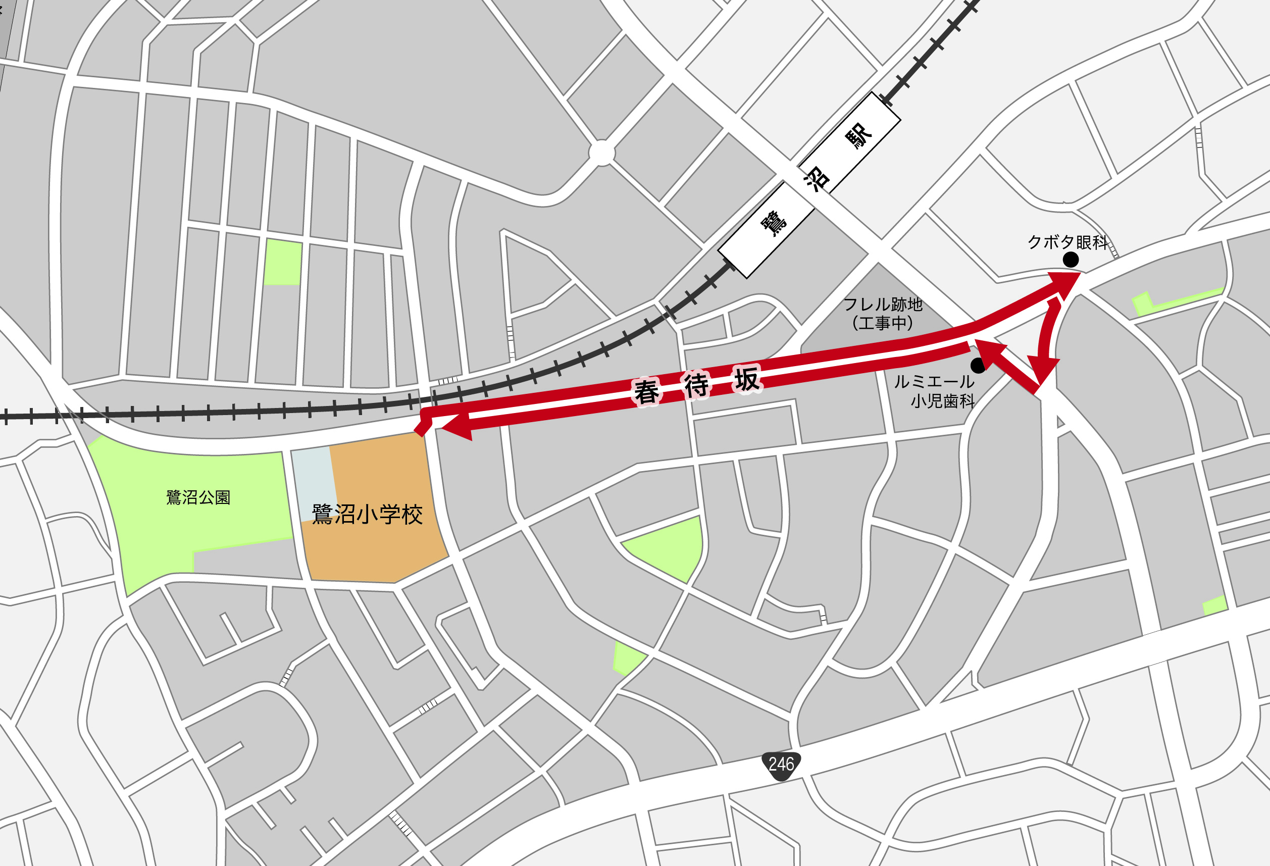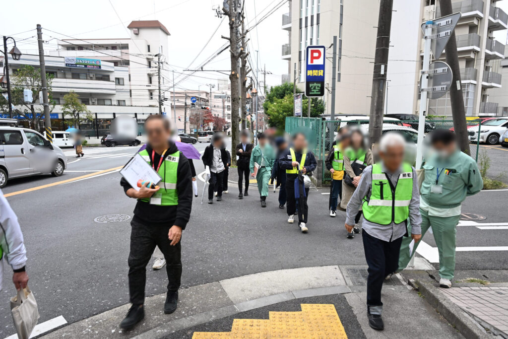 今回のルートは、春待坂からクボタ眼科下交差点、ルミエール鷺沼交差点までの往復。特に再開発工事が本格化している鷺沼駅周辺と、通学路の中で最も子どもの往来が多い春待坂を集中的に確認しました。