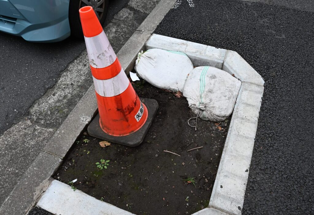 街路樹更新工事による細かな段差に注意!