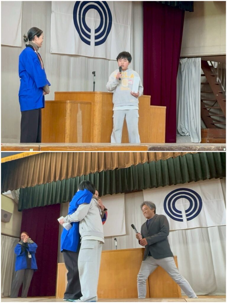 そろそろ贈呈式が終わる…と思いきや⁉︎「ちょっと待った!」と呼び止められるPTA副会長。ザワつく会場と、予想外の生徒の動きに慌ててマイクを運ぶ先生。壇上に再びあがった生徒代表(副会長のご子息)から、なんとサプライズで感謝のメッセージが!!それをみて広報委員は涙。PTAメンバーも涙。6年生も泣いている子がいました。とてもあたたかく、優しさが溢れた雰囲気の中で、無事にPTA卒業記念品の授与が終わりました。