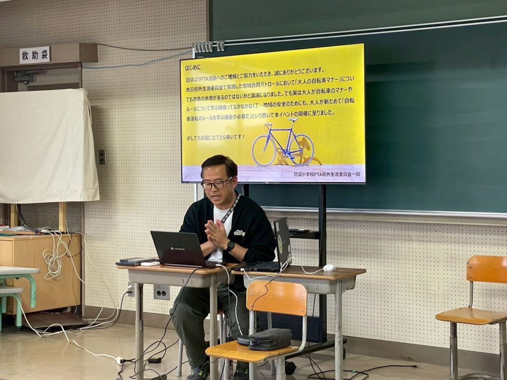 本教室は、昨年10月に行った地域合同パトロールで、「大人の自転車マナー改善が求められる」という切実なご意見をいただいたことがきっかけで企画したものです。駅前再開発に伴う増加や、2026年4月から「青色切符」がスタートすることもあり、当委員会では「大人が自転車走行ルールを学ぶ場」をつくることが重要な役割であると考えました。
